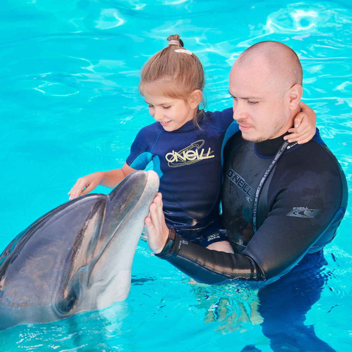 • Always take off glasses, jewelry, hats before entering a pool with dolphins so as not to injure yourself or the dolphin while swimming