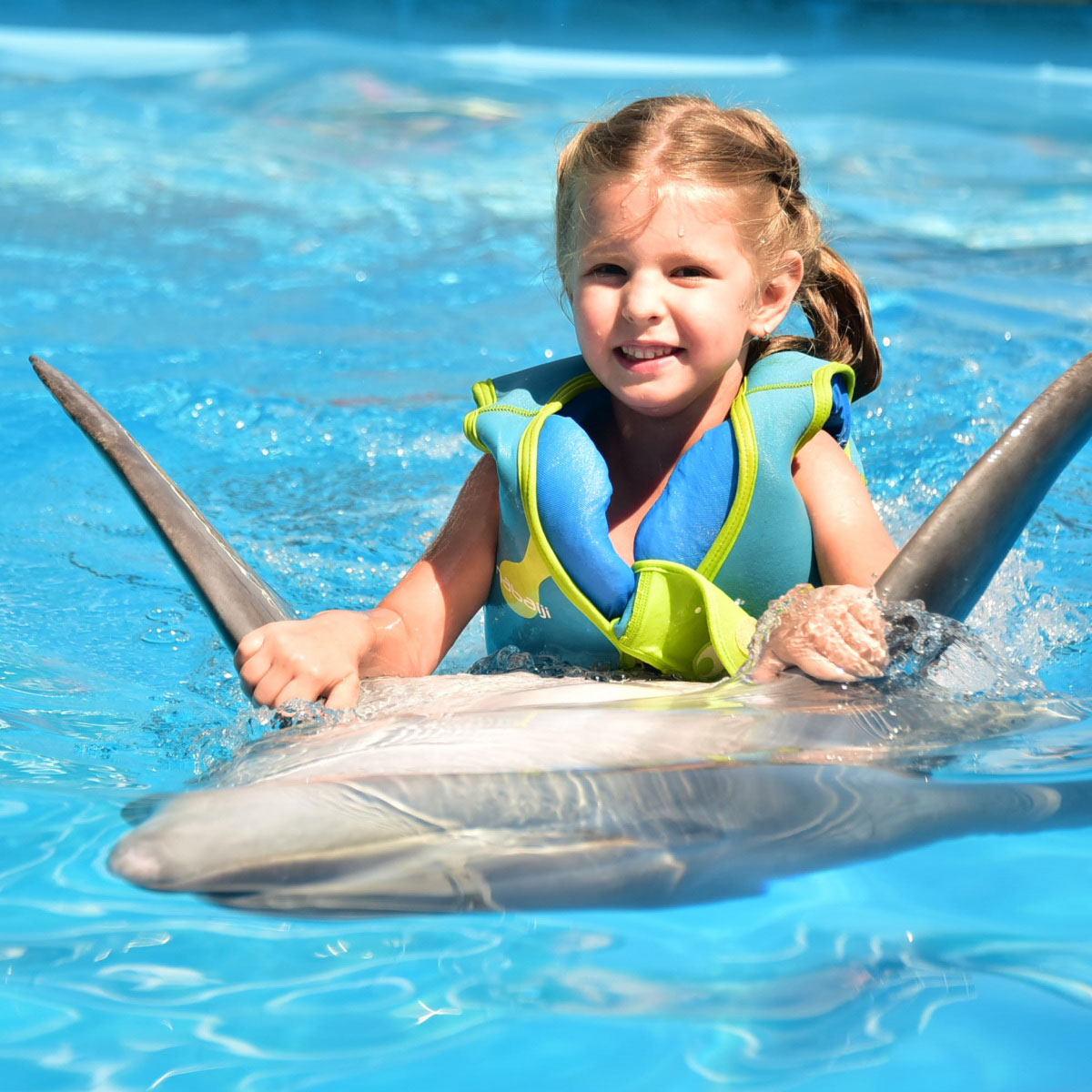• When swimming with dolphins, always listen to the instructor’s directions and be relaxed while holding onto the dolphin’s fins