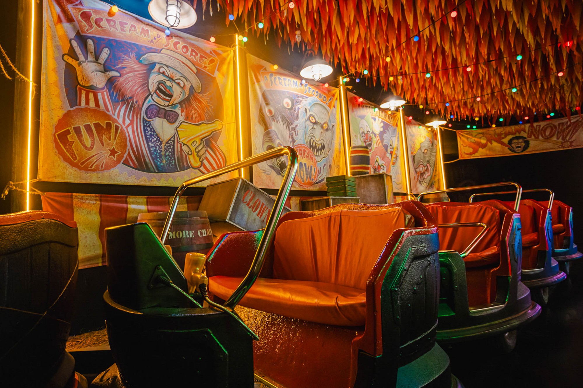 Take a surreal journey into a black abyss of crazy clowns, ghastly grave robbers, terrorizing trolls, the living dead, devilish dogs, attacking skeletons, mystical mirrows and enough illusions and delusions to give you the happiest of nightmares for weeks to come! As you ride, you'll engage your own personal Scream! to help make the action EVEN SCARIER!