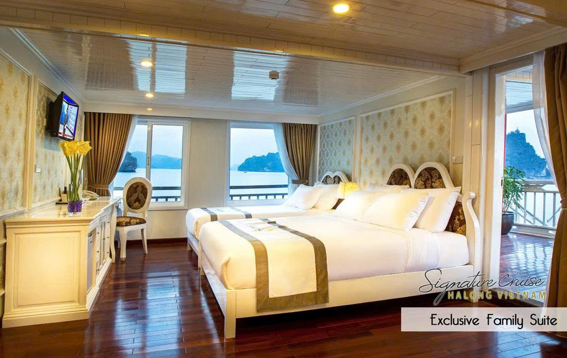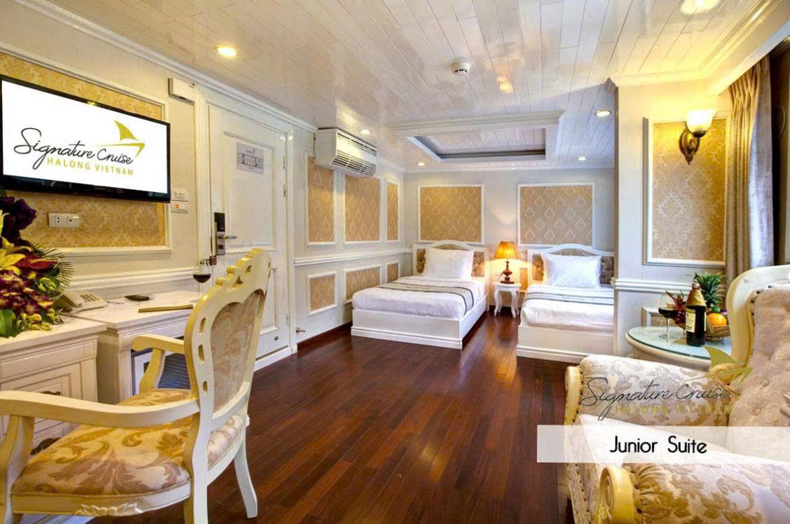 12:00 Warmly welcomed by Signature Team in Halong International Harbour. Complete the luggage check-in procedure at the waiting lounge before boarding for the cruise.