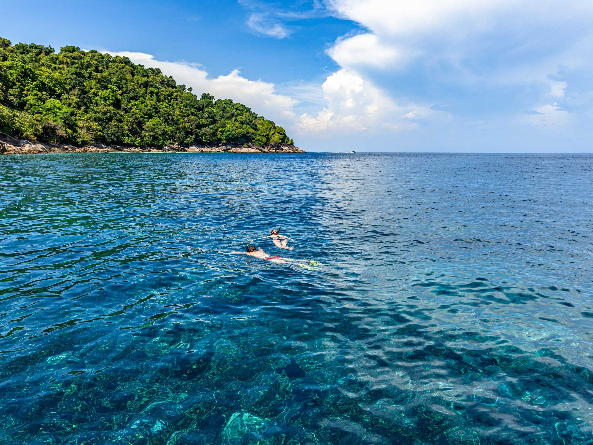 The Surin Islands are truly perfect for snorkeling, swimming and relaxing. Therefore we have three snorkel stops of 45 minutes each. It is enough time to explore the beautiful underwater world. For lunch we are visiting a restaurant of the national park where we will enjoy a delicious Thai buffet. After lunch you will have time to enjoy the beach and lay in the sun.