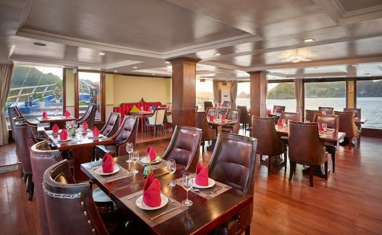 19:00 Savor deluxe dinner Enjoy delicious local food prepared and served for you by our wonderful on-board catering staff, night view on Lan Ha Bay is incredible.