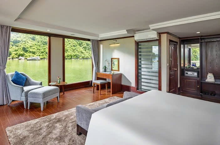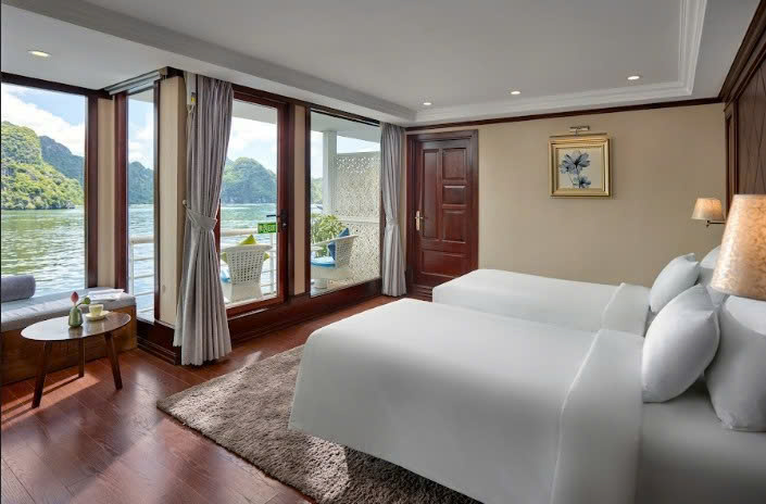 13:00 Enjoy fabulous lunch Fabulous lunch is served while Cruises starts his sail into magnificent Ha Long Bay – an extension of Ha Long Wonder which is much quieter and has fewer tourists. He will pass famous Finger Islet, Candle Islet and thousands of uniquely shaped limestone towers and islands.
